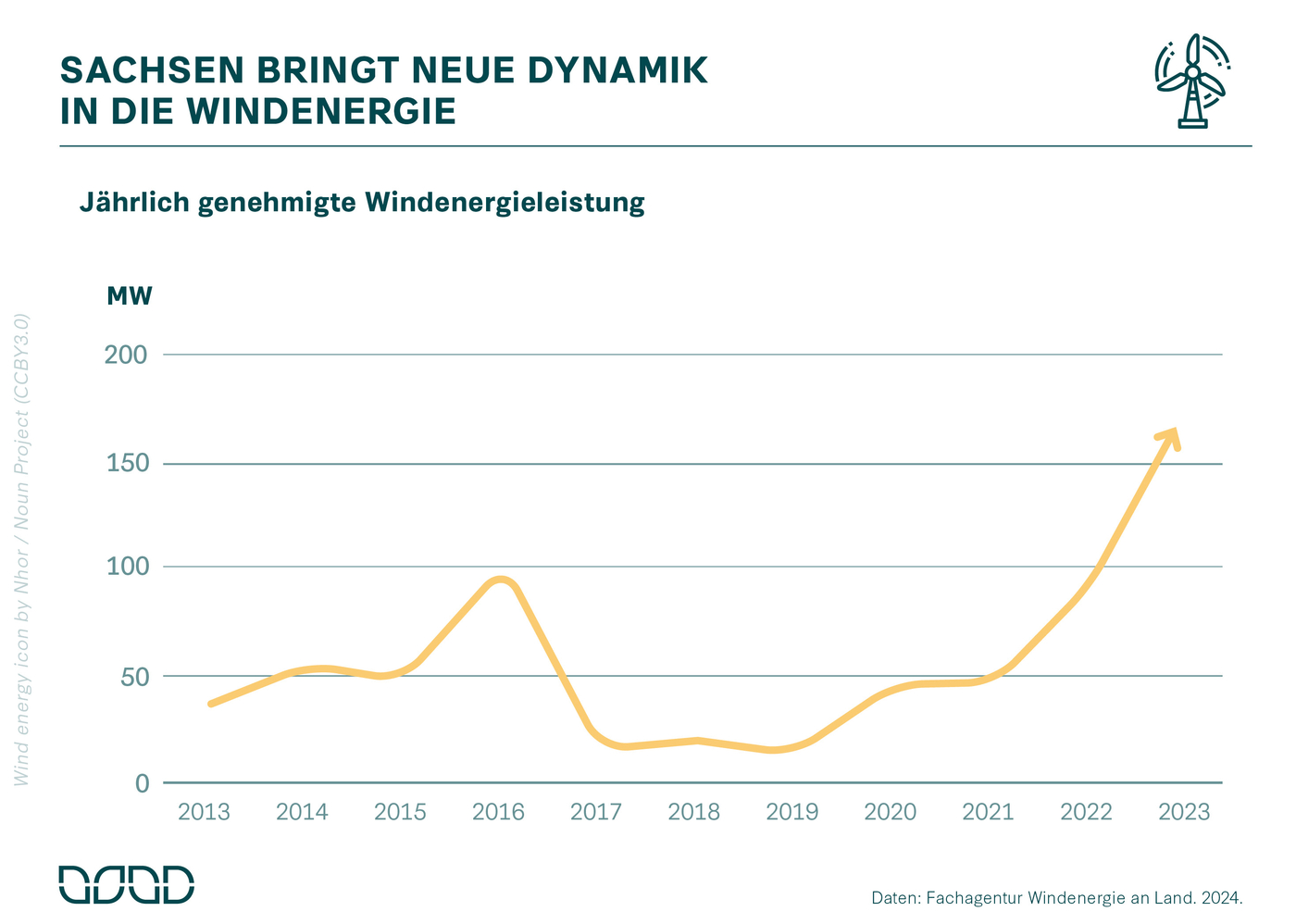 Nachdem in Sachsen in den letzten Jahren mehr Windräder ab- als zugebaut wurden, zeichnet sich nun bei den Genehmigungen eine Kehrtwende ab. Seit 2021 wurde die jährliche genehmigte Windenergieleistung mehr als verdreifacht – von 47 Megawatt auf 161 Megawatt.
